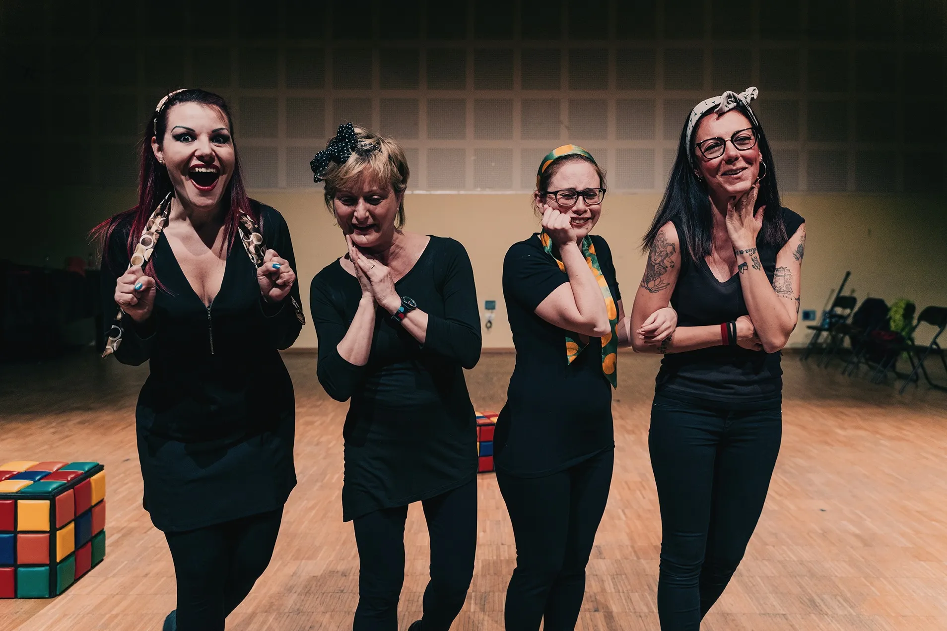 Teatro Libera Tutti è un format di percorso formativo durante il quale trasmettiamo le tecniche di base dell’attore, elementi di improvvisazione teatrale, esercizi di controllo psico fisico, sperimentazioni creative con il linguaggio e con il corpo.